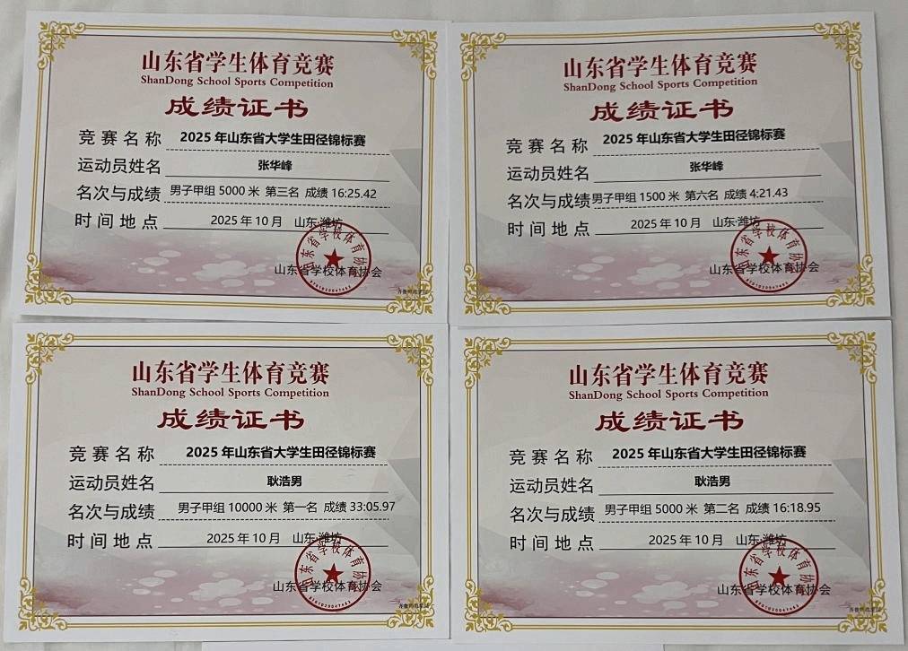 据了解,2025年山东省大学生田径锦标赛于10月9日上昼在潍坊市奥体中心开幕,来自全省60余所高校的参赛选手共同竞技。耿浩男和张华峰代表学校永诀进入须眉10000米、5000米和1500米的比赛角逐。在10月10日的1500米比赛中,张华峰四肢第一次参赛的新东说念主,致力拼搏,获取第6名的好得益。10月11日,在5000米的比赛中,耿浩男和张华峰通力合营,斩获银牌和铜牌。随后,耿浩男在须眉10000米的比赛中,敢打敢拼、通盘杰出,最终拿下冠军,为本次比赛作念了一个完好意思的收官。